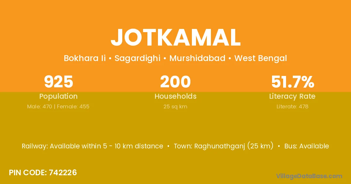 Raghunathganj (25 km) is the nearest town to Jotkamal village for major economic activities and is located approximately 25 km away.
