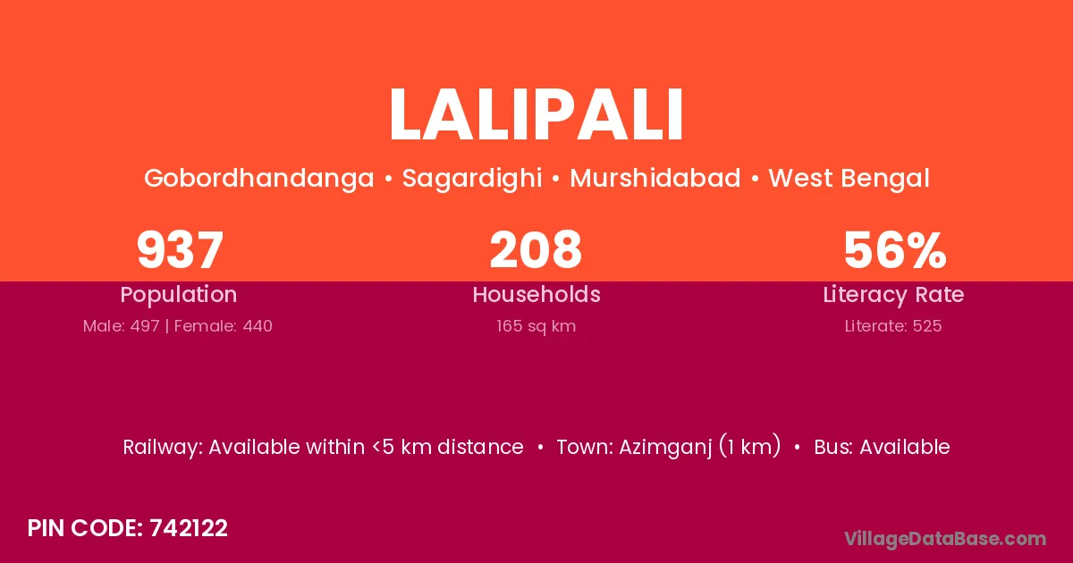 Azimganj (1 km) is the nearest town to Lalipali village for major economic activities and is located approximately 1 km away.