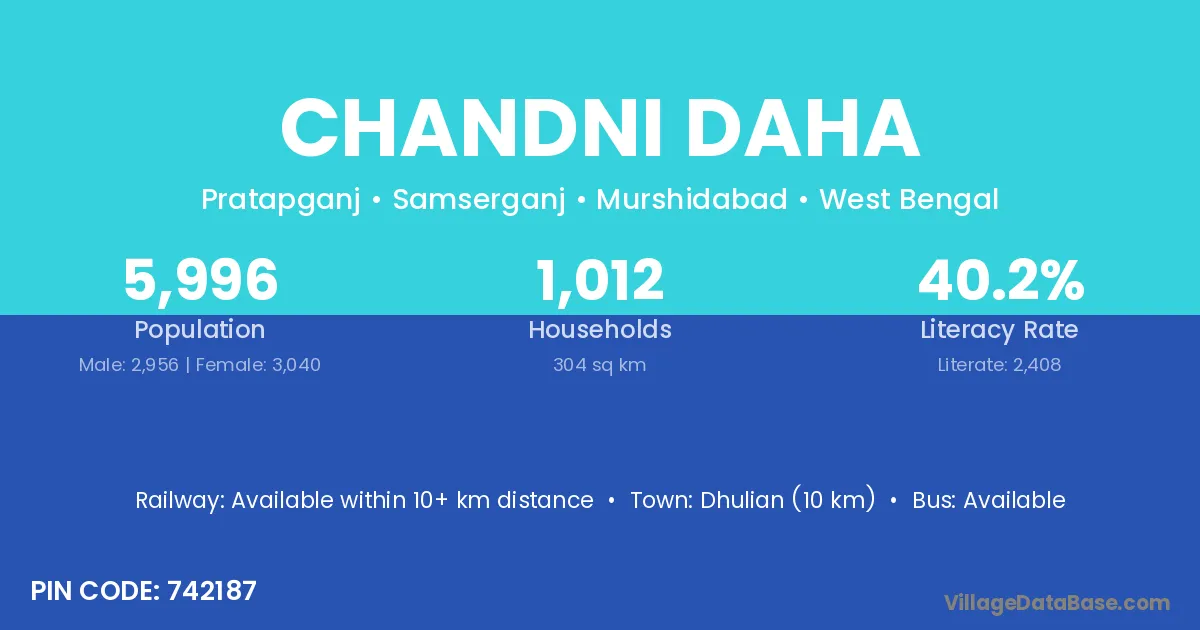Chandni Daha village is located in the Samserganj Subdivision of the Murshidabad district in West Bengal.