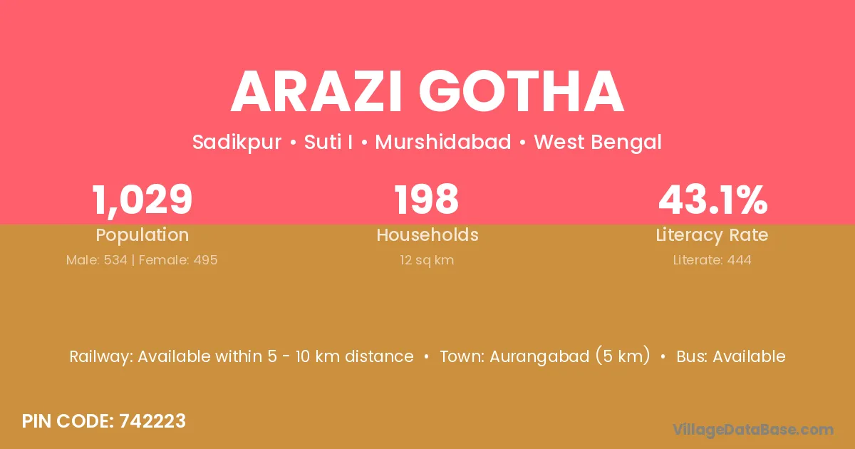 Arazi Gotha village is located in the Suti I Subdivision of the Murshidabad district in West Bengal .