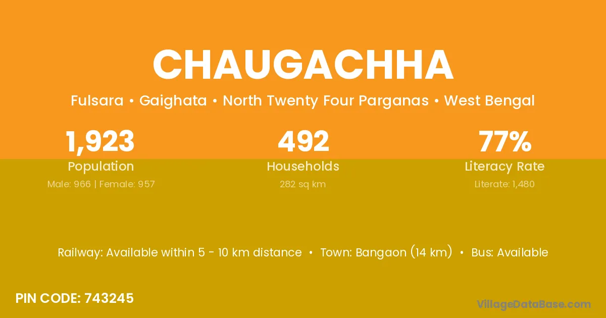 Chakadaha (10 km) is the nearest town to Chaugachha village for major economic activities and is located approximately 10 km away.