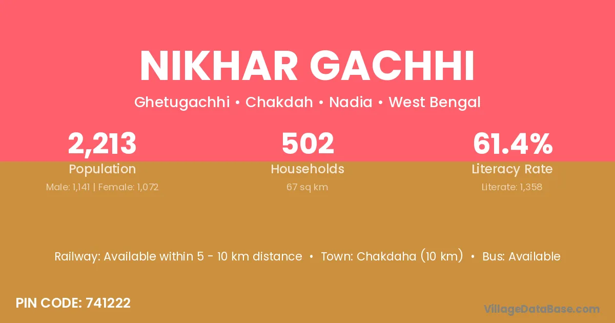 Chakdaha (10 km) is the nearest town to Nikhar Gachhi village for major economic activities and is located approximately 10 km away.