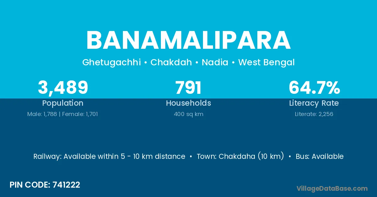 Chakdaha (10 km) is the nearest town to Banamalipara village for major economic activities and is located approximately 10 km away.