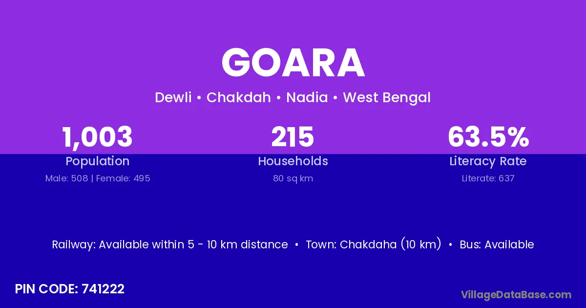 Chakdaha (10 km) is the nearest town to Goara village for major economic activities and is located approximately 10 km away.