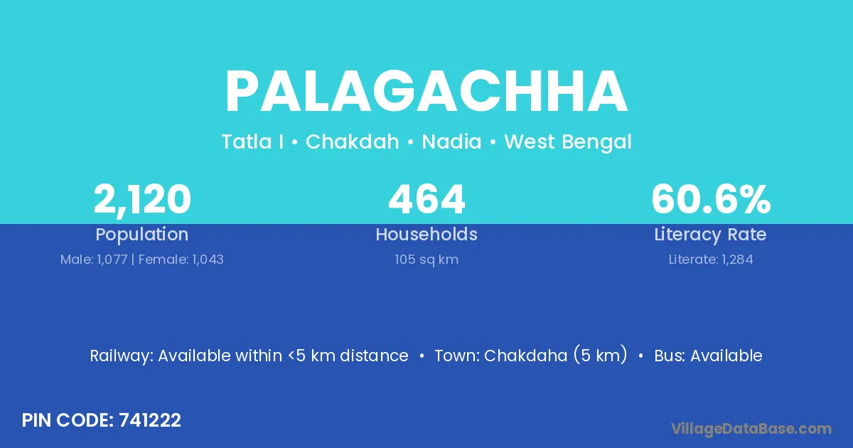 Chakdaha (5 km) is the nearest town to Palagachha village for major economic activities and is located approximately 5 km away.