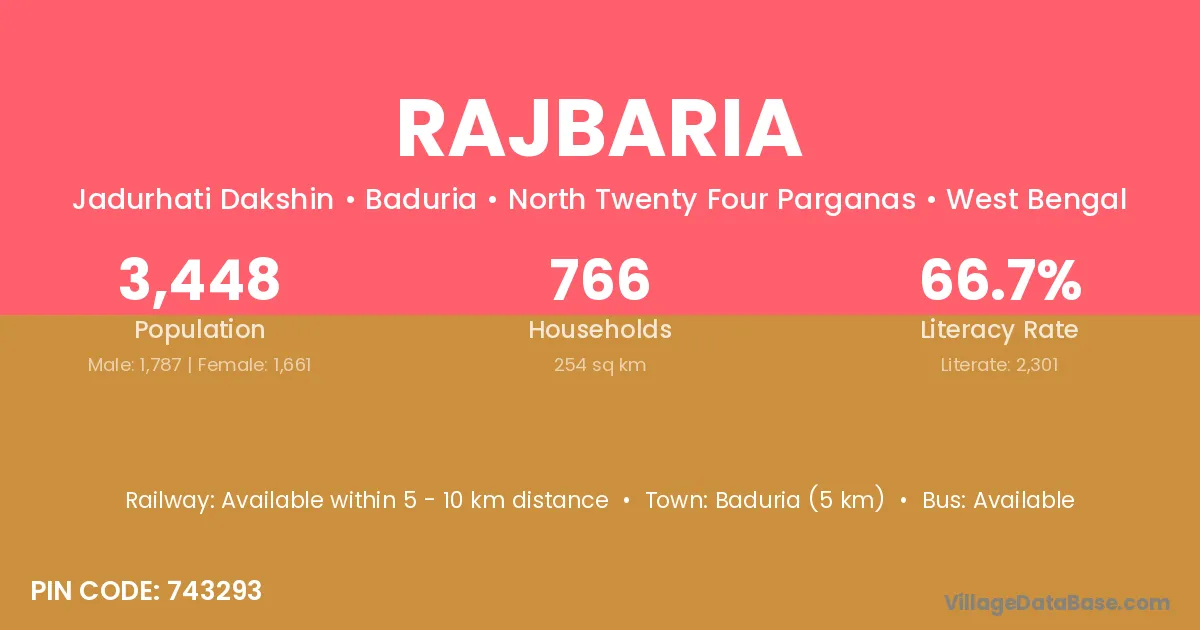 Chakdaha (10 km) is the nearest town to Rajbaria village for major economic activities and is located approximately 10 km away.