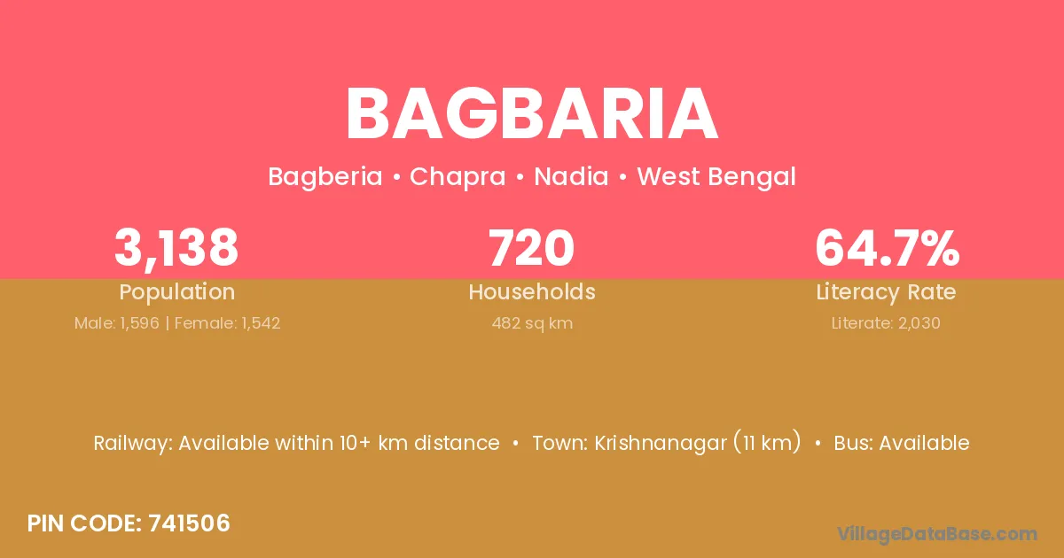 Krishnanagar (11 km) is the nearest town to Bagbaria village for major economic activities and is located approximately 11 km away.
