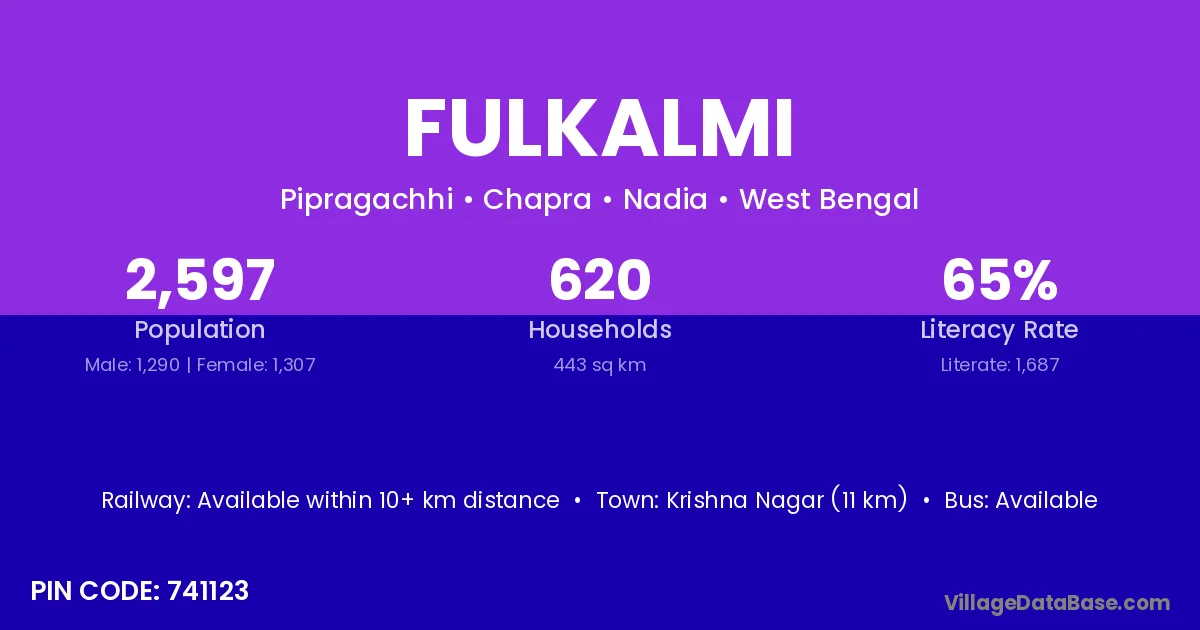 Krishna Nagar (11 km) is the nearest town to Fulkalmi village for major economic activities and is located approximately 11 km away.
