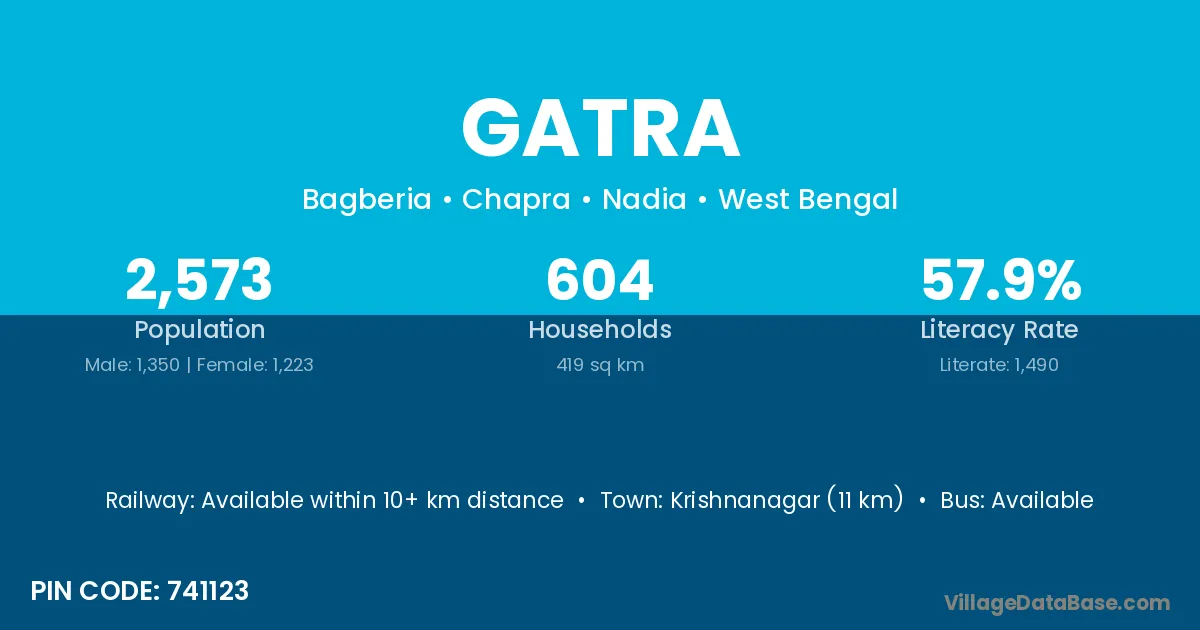 Gatra village is located in the Chapra Subdivision of the Nadia district in West Bengal.