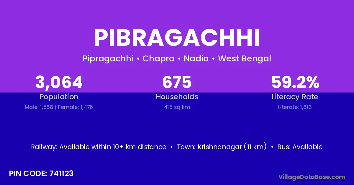 Krishnanagar (11 km) is the nearest town to Pibragachhi village for major economic activities and is located approximately 11 km away.
