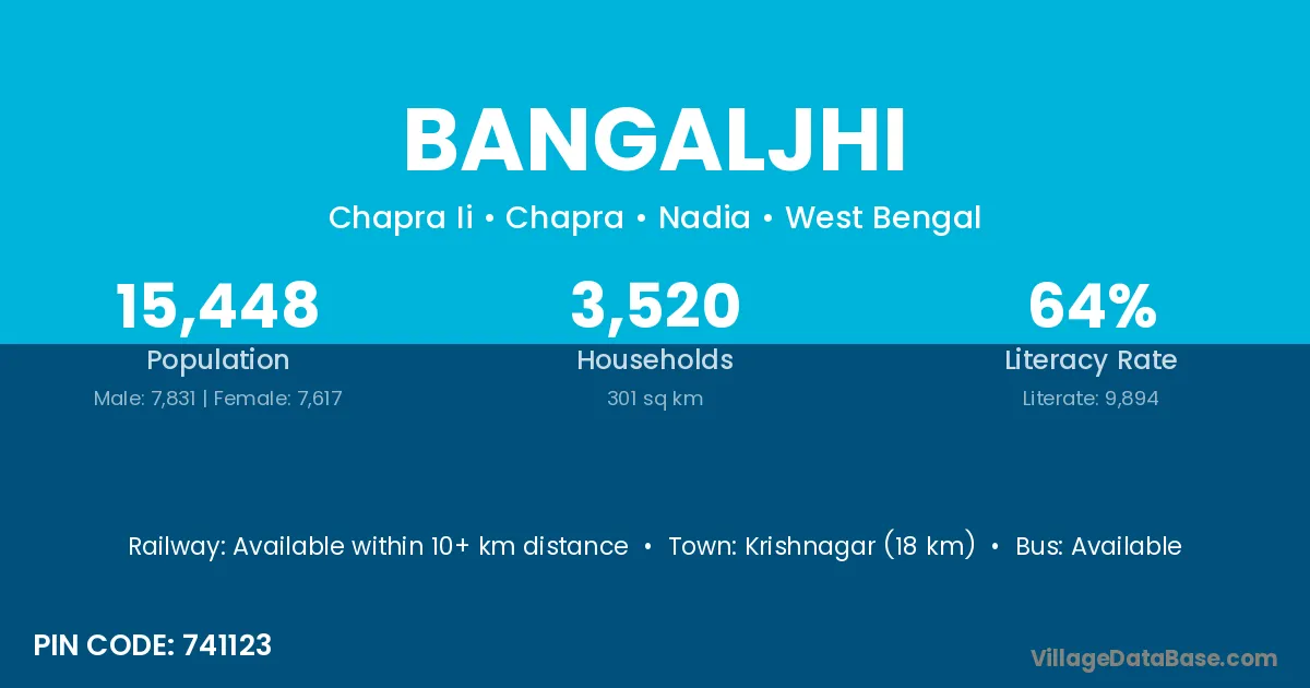 Krishnagar (18 km) is the nearest town to Bangaljhi village for major economic activities and is located approximately 18 km away.