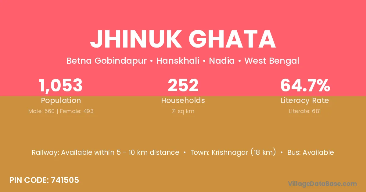 Krishnagar (18 km) is the nearest town to Jhinuk Ghata village for major economic activities and is located approximately 18 km away.