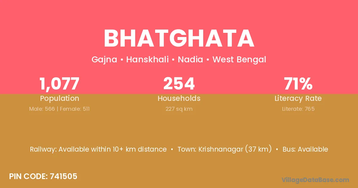 Bhatghata village is located in the Hanskhali Subdivision of the Nadia district in West Bengal.