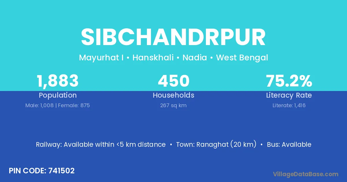Ranaghat (20 km) is the nearest town to Sibchandrpur village for major economic activities and is located approximately 20 km away.