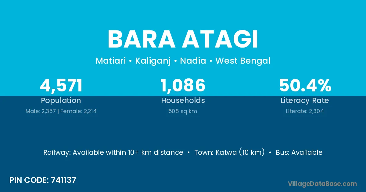 Katwa (10 km) is the nearest town to Bara Atagi village for major economic activities and is located approximately 10 km away.