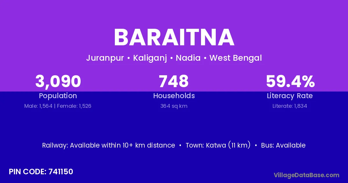 Katwa (11 km) is the nearest town to Baraitna village for major economic activities and is located approximately 11 km away.