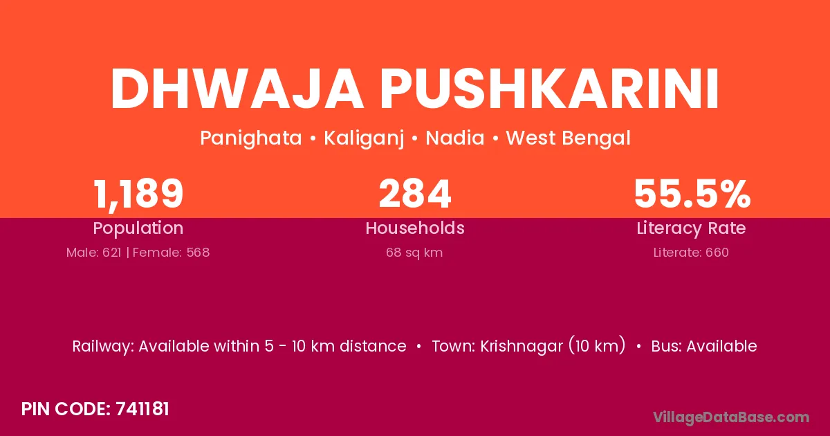 Dhwaja Pushkarini village is located in the Kaliganj Subdivision of the Nadia district in West Bengal .