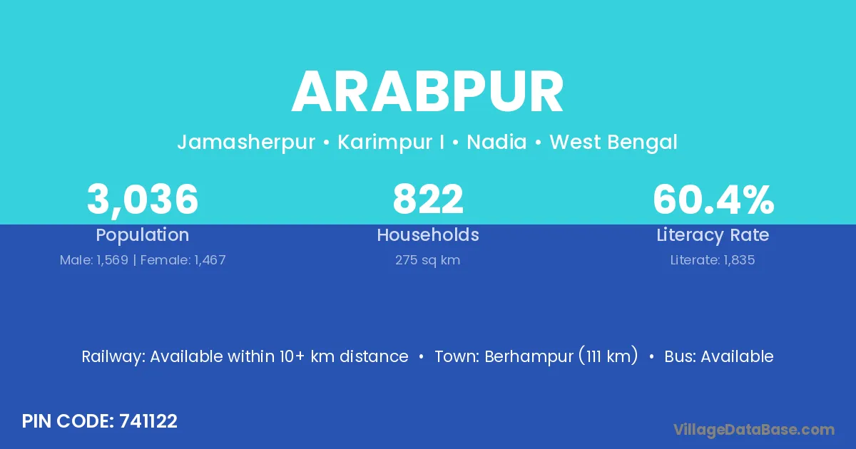 According to Census 2011 information, the village code of Arabpur village is 741122.