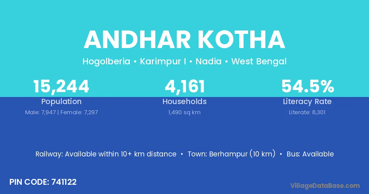 Andhar Kotha village is located in the Karimpur I Subdivision of the Nadia district in West Bengal.