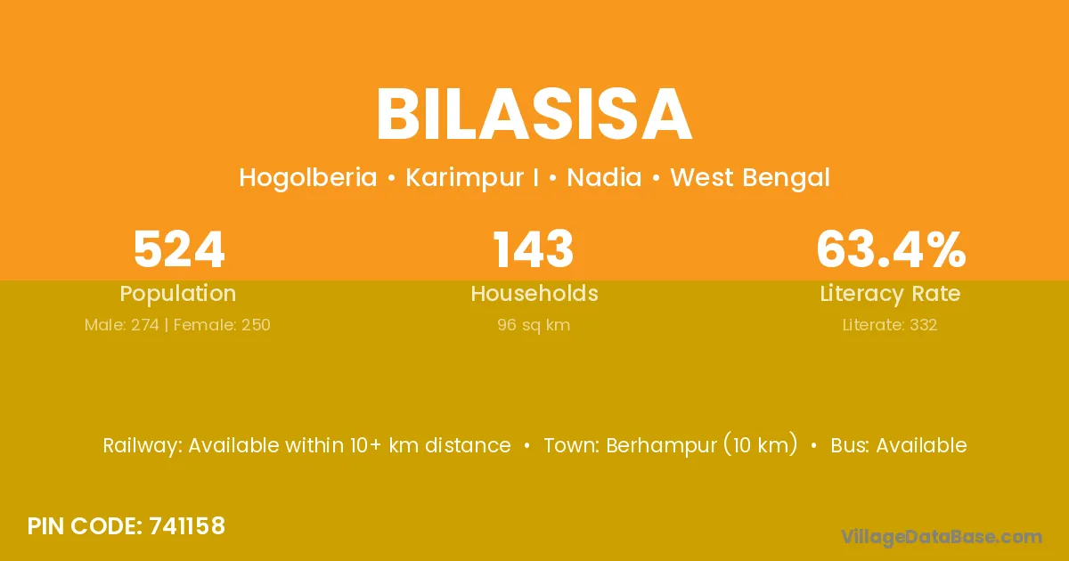 According to Census 2011 information, the village code of Bilasisa village is 741158.