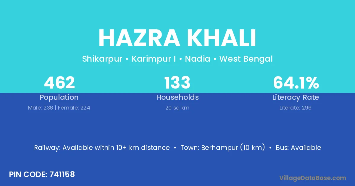Berhampur (10 km) is the nearest town to Hazra Khali village for major economic activities and is located approximately 10 km away.
