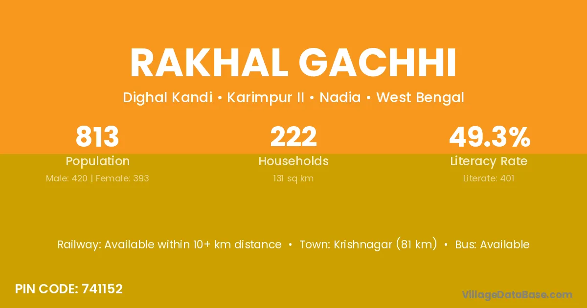 Rakhal Gachhi village has a total population of 813 people, of which 420 are males and 393 are females.