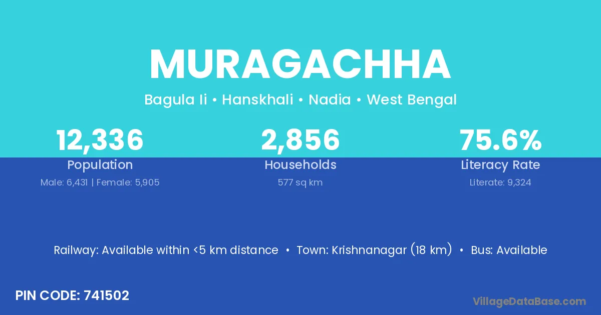 Krishnagar (20 km) is the nearest town to Muragachha village for major economic activities and is located approximately 20 km away.