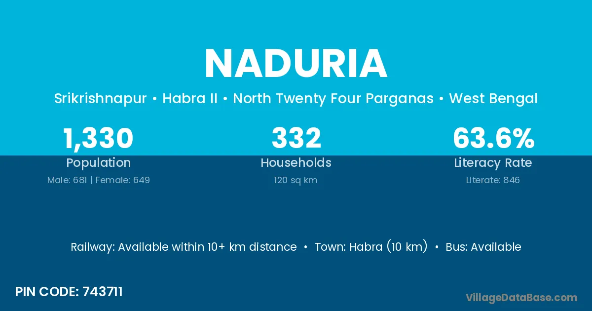 Naduria village is located in the Krishnagar I Subdivision of the Nadia district in West Bengal.