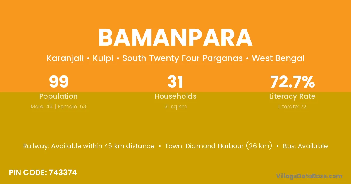 Krishnanagar (10 km) is the nearest town to Bamanpara village for major economic activities and is located approximately 10 km away.