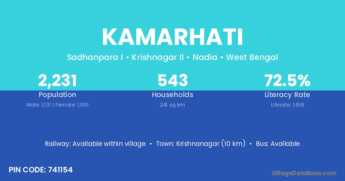 Krishnanagar (10 km) is the nearest town to Kamarhati village for major economic activities and is located approximately 10 km away.