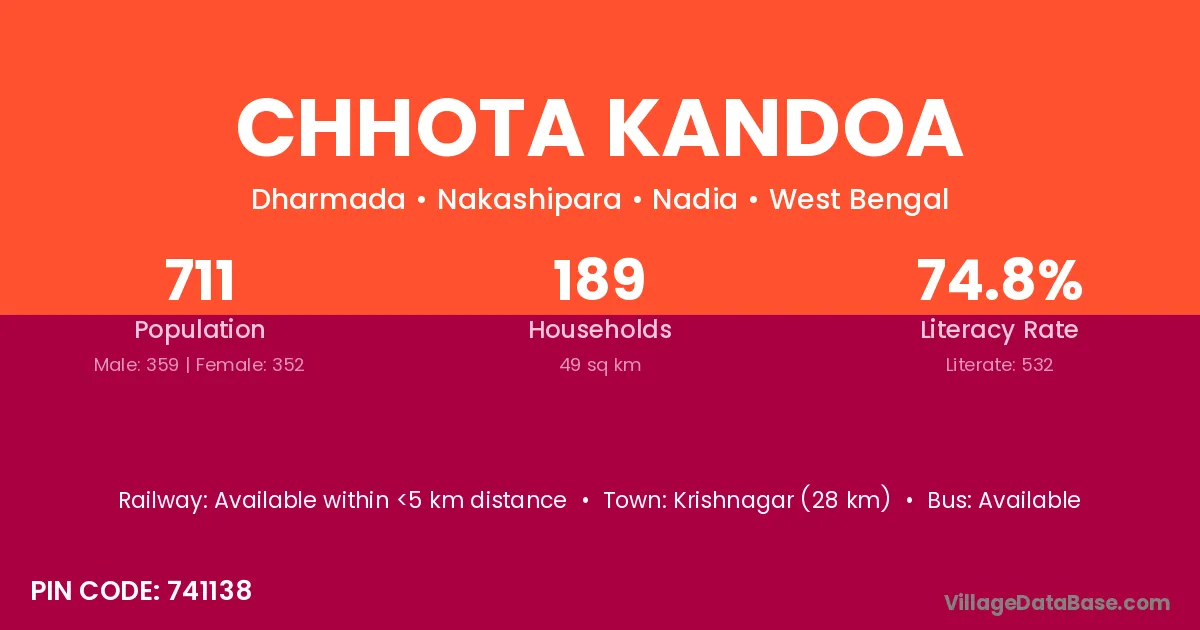 Chhota Kandoa village has a total population of 711 people, of which 359 are males and 352 are females.