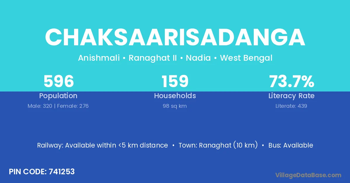 According to Census 2011 information, the village code of Chaksaarisadanga village is 741253.