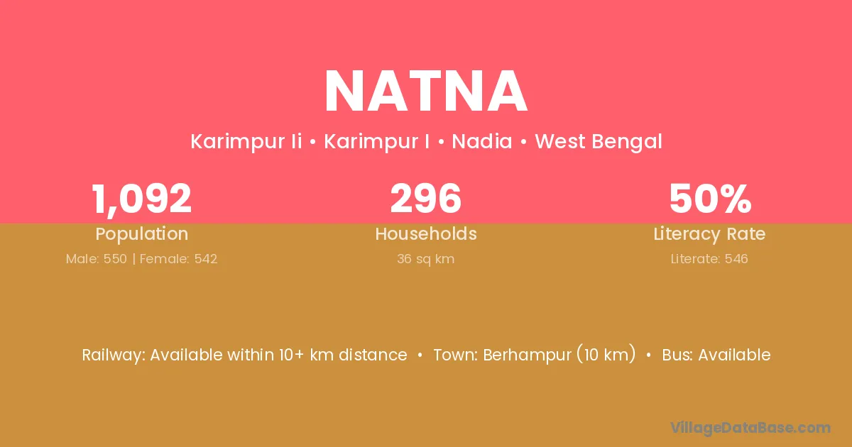 Krishna Nagar (44 km) is the nearest town to Natna village for major economic activities and is located approximately 44 km away.