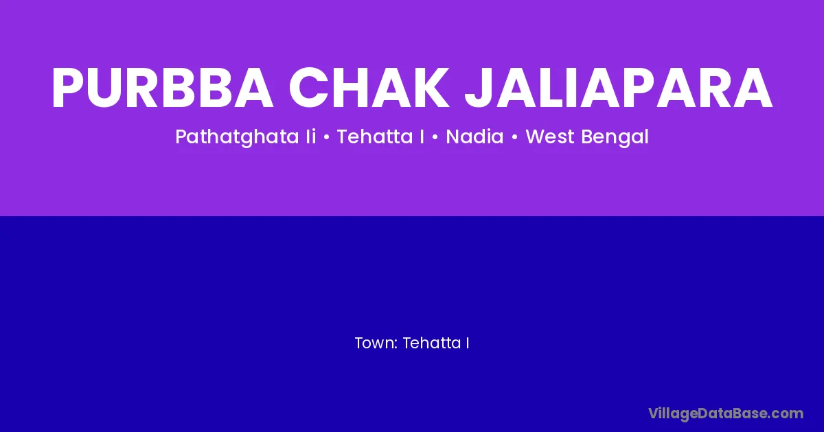Purbba Chak Jaliapara village is located in the Tehatta I Subdivision of the Nadia district in West Bengal.