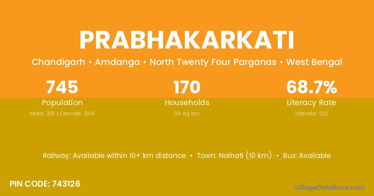 Naihati (10 km) is the nearest town to Prabhakarkati village for major economic activities and is located approximately 10 km away.