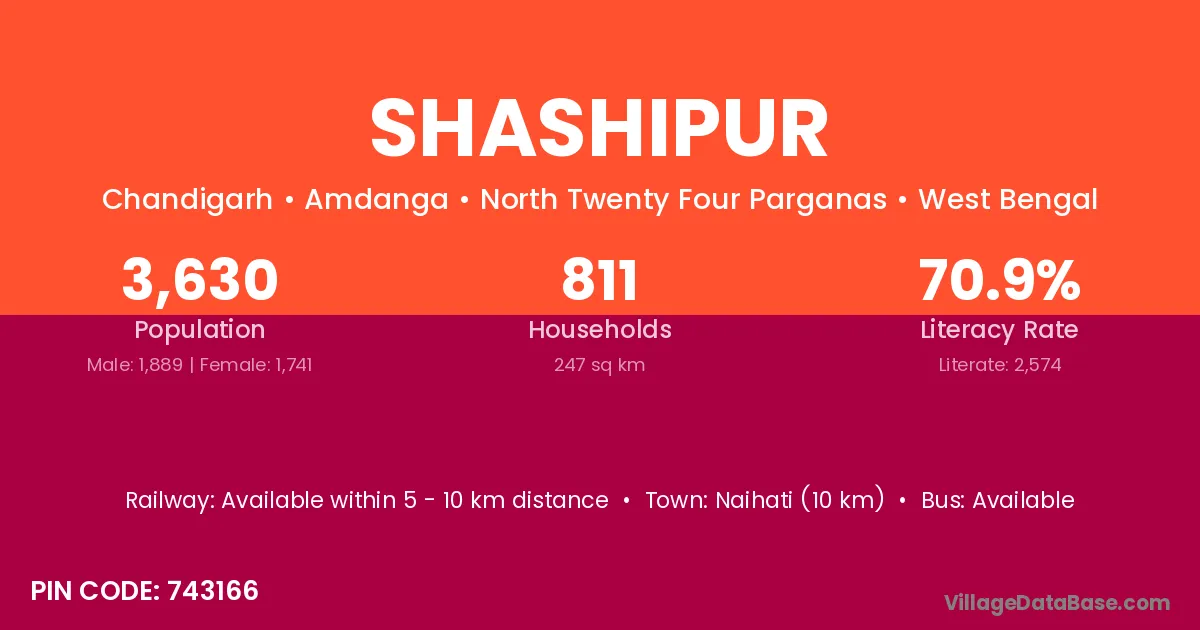 Naihati (10 km) is the nearest town to Shashipur village for major economic activities and is located approximately 10 km away.