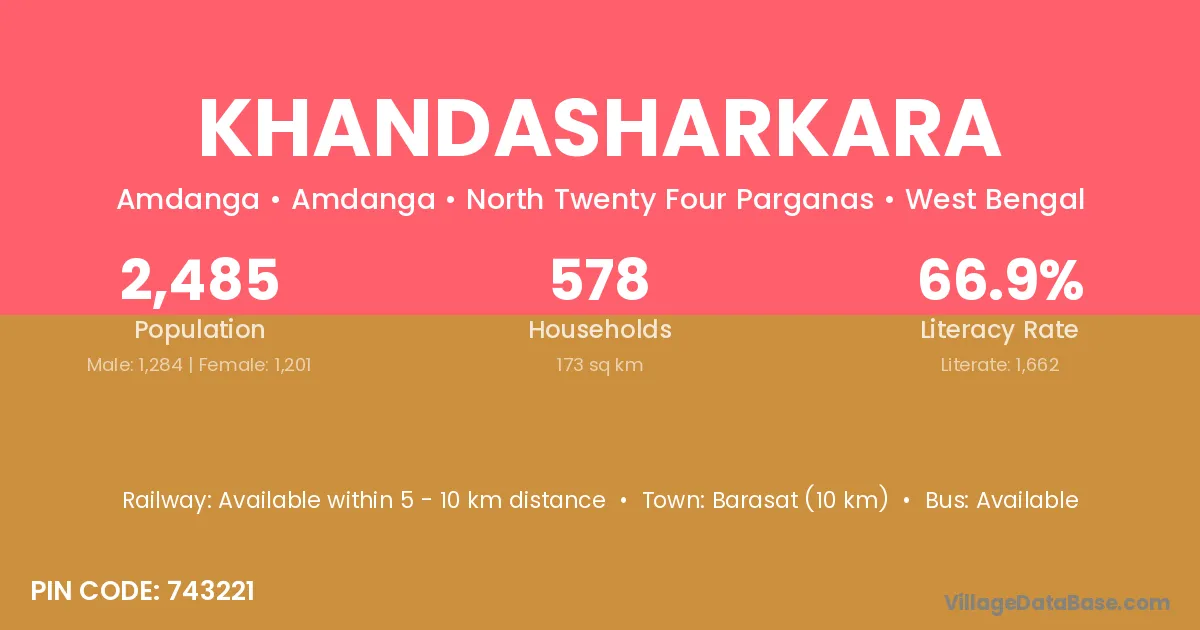 Barasat (10 km) is the nearest town to Khandasharkara village for major economic activities and is located approximately 10 km away.