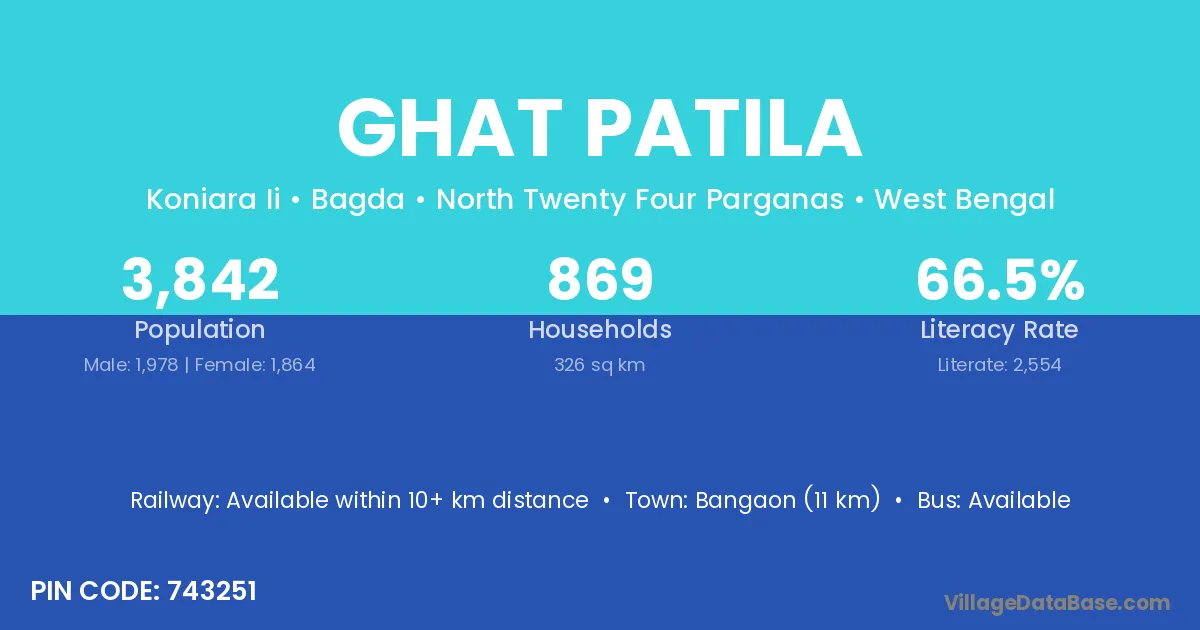 Bangaon (11 km) is the nearest town to Ghat Patila village for major economic activities and is located approximately 11 km away.
