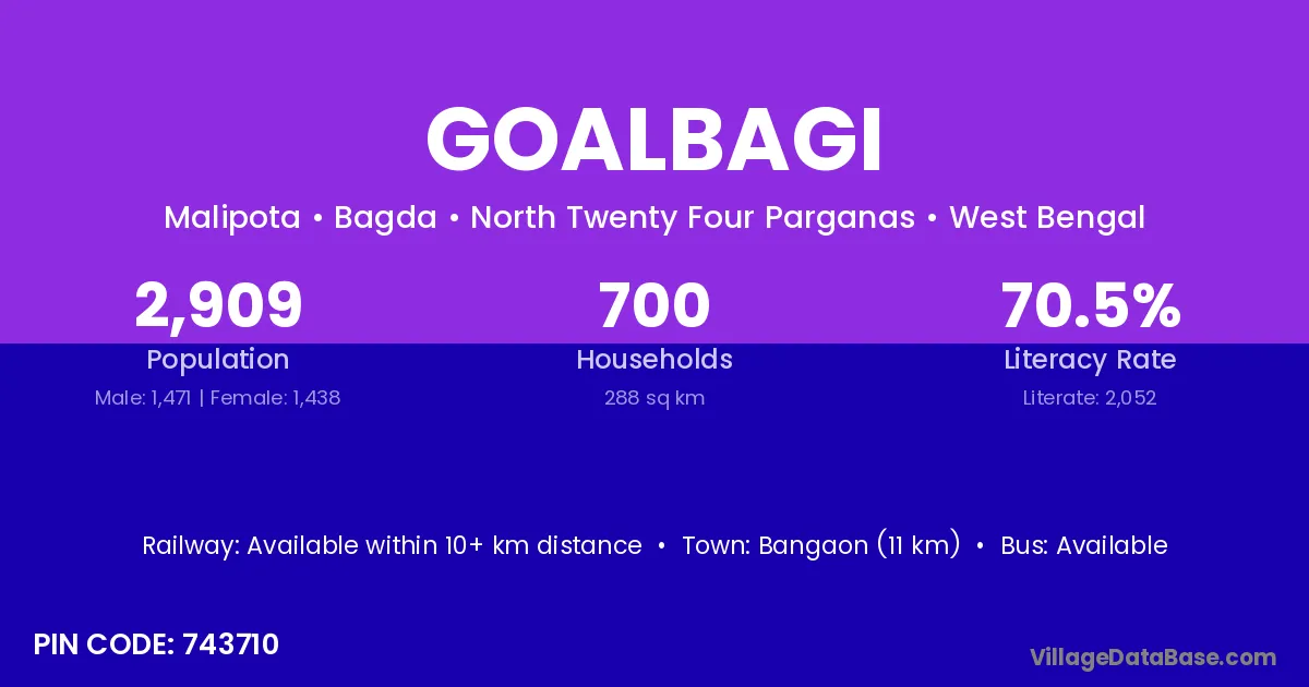 Bangaon (11 km) is the nearest town to Goalbagi village for major economic activities and is located approximately 11 km away.