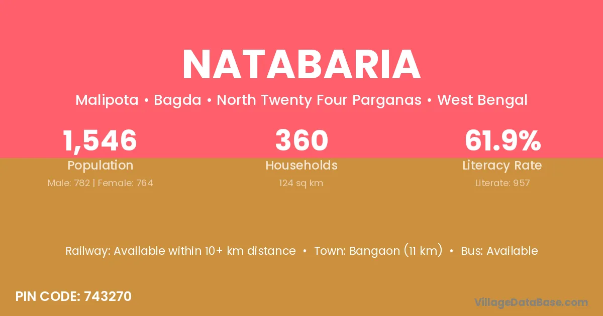 Bangaon (11 km) is the nearest town to Natabaria village for major economic activities and is located approximately 11 km away.