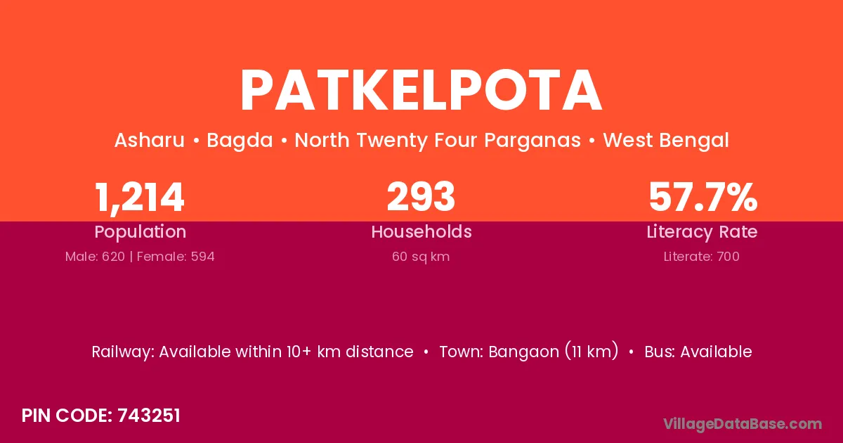 Bangaon (11 km) is the nearest town to Patkelpota village for major economic activities and is located approximately 11 km away.