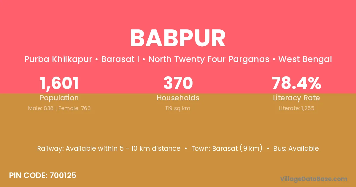 Barasat (9 km) is the nearest town to Babpur village for major economic activities and is located approximately 9 km away.