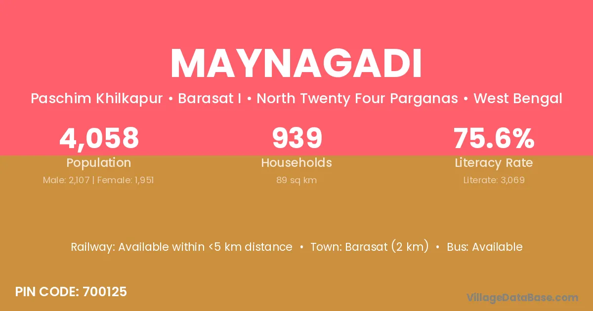 Barasat (2 km) is the nearest town to Maynagadi village for major economic activities and is located approximately 2 km away.