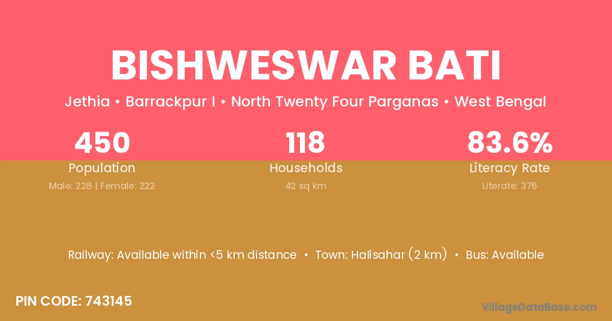 Halisahar (2 km) is the nearest town to Bishweswar Bati village for major economic activities and is located approximately 2 km away.