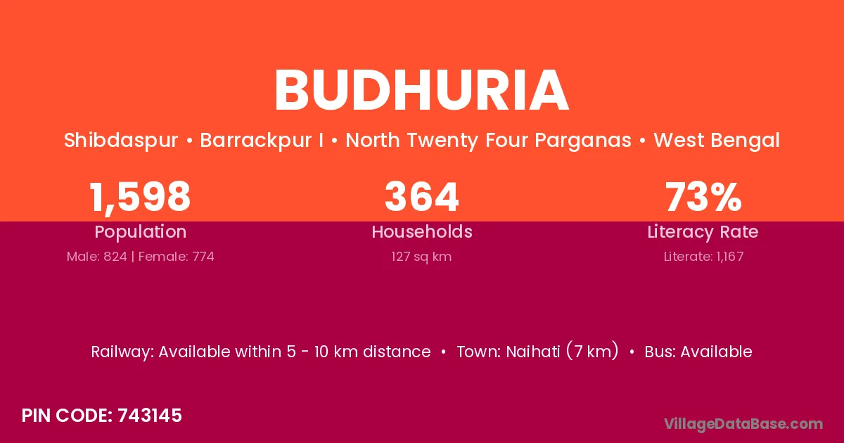 Naihati (7 km) is the nearest town to Budhuria village for major economic activities and is located approximately 7 km away.