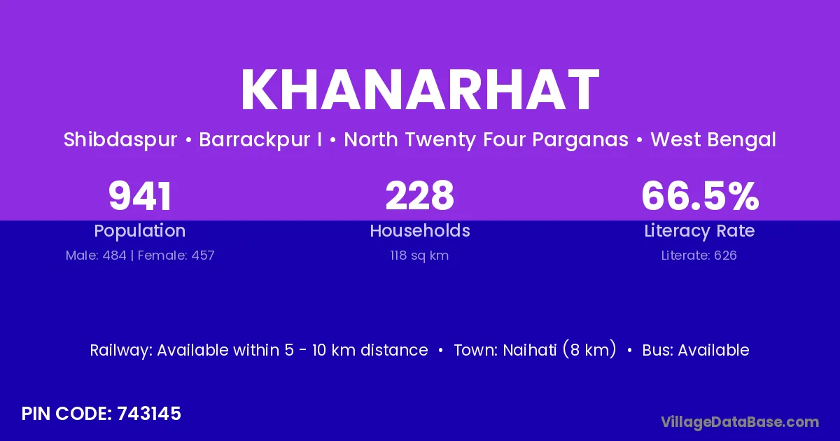 Naihati (8 km) is the nearest town to Khanarhat village for major economic activities and is located approximately 8 km away.