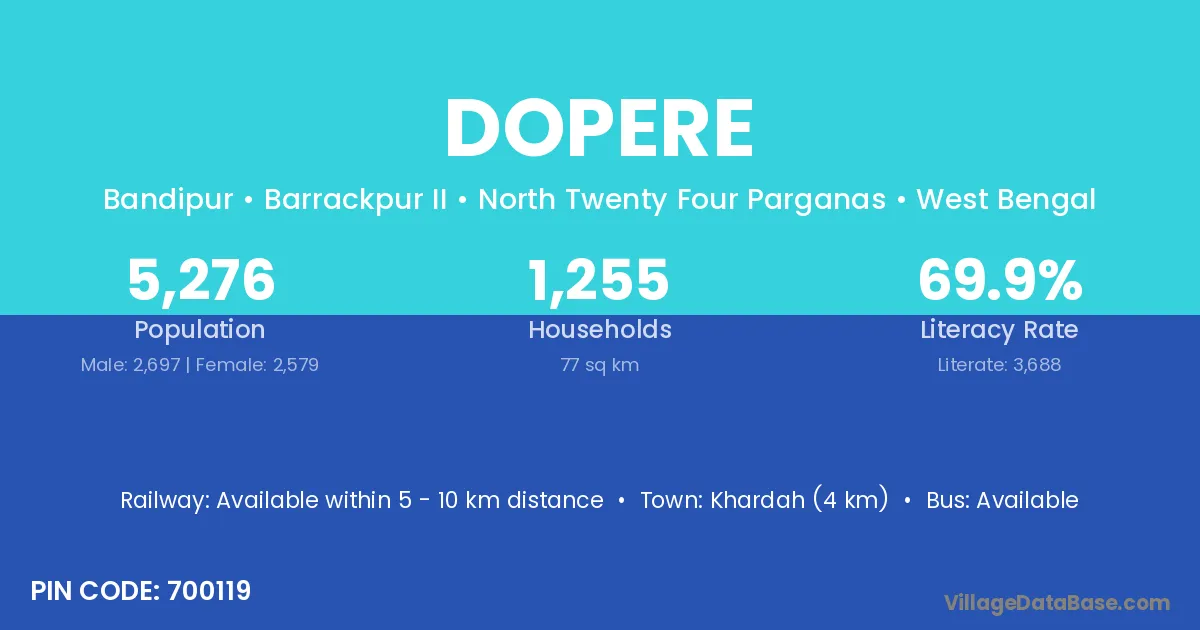 Khardah (4 km) is the nearest town to Dopere village for major economic activities and is located approximately 4 km away.