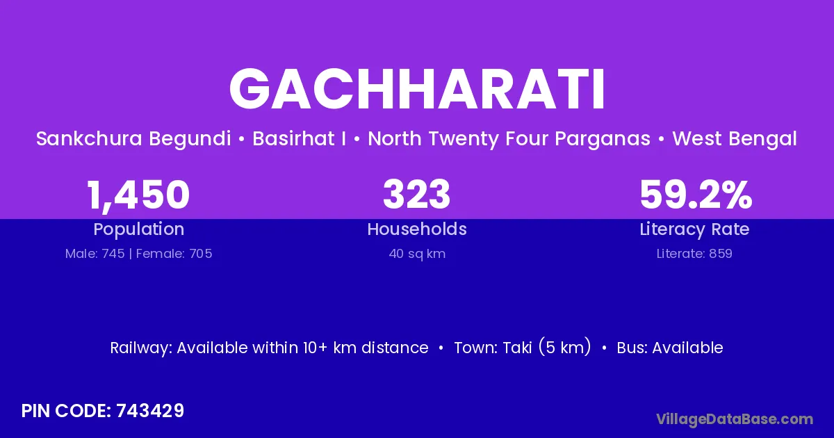 According to Census 2011 information, the village code of Gachharati village is 743429.