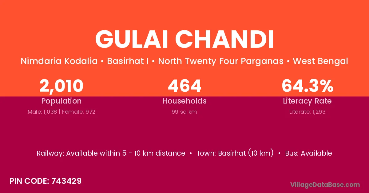 Basirhat (10 km) is the nearest town to Gulai Chandi village for major economic activities and is located approximately 10 km away.