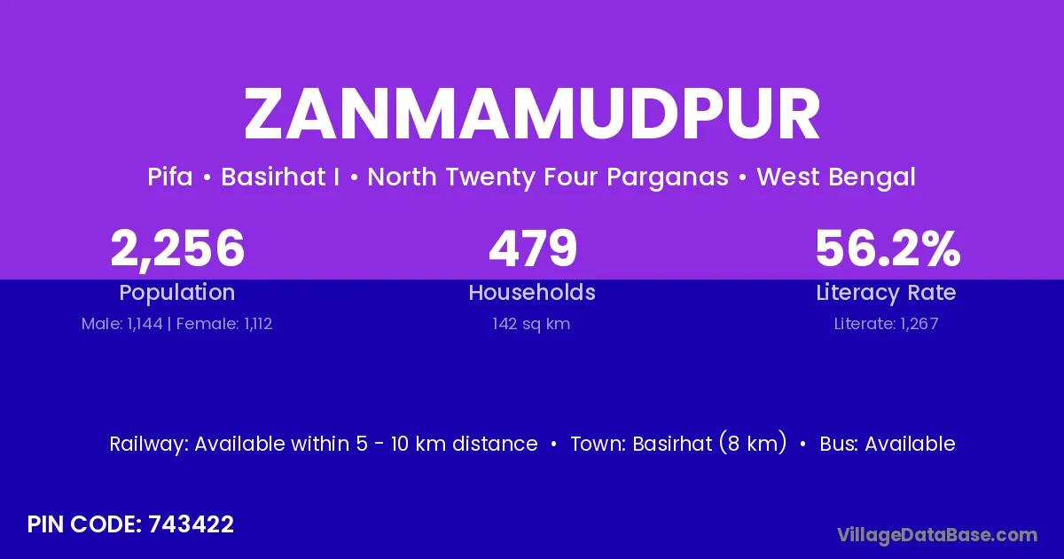 Basirhat (8 km) is the nearest town to Zanmamudpur village for major economic activities and is located approximately 8 km away.